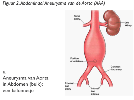 Een aneurysma is het uitrekken of zwakker worden van een slagader, waardoor deze zich als een soort ballonnetje opblaast. De wand van de slagader wordt dunner doordat hij zijn elasticiteit verliest . Door het oprekken van de wand bestaat de kans dat de slagader scheurt (ruptuur). De slagader waarbij dit het meeste voorkomt is de aorta. Dit is de belangrijkste slagader in de buikholte (abdomen).
