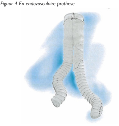 Deze chirurgische behandeling houdt in dat er zowel in de rechter als in de linker lies een kleine incisie wordt gemaakt. ‘Endo’ betekent in en ‘vasculair’ staat voor bloedvat. Bij de incisie worden de beenslagaders vrij gelegd, waardoor de nog opgevouwen prothese naar binnen kan worden gebracht. In het bloedvat zal de prothese onder röntgendoorlichting op de juiste hoogte worden ontplooid. Deze prothese bevat naast het polyester ook metalen stentringen (Nitinol) die de prothese zijn juiste vorm en omvang geven.