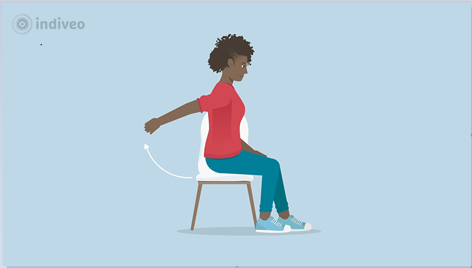 Leg uw handen zo laag mogelijk op uw rug en vouw ze in elkaar. Schuif uw handen langs uw rug omhoog. Houd dit even vast. Laat daarna uw handen weer rustig zakken.