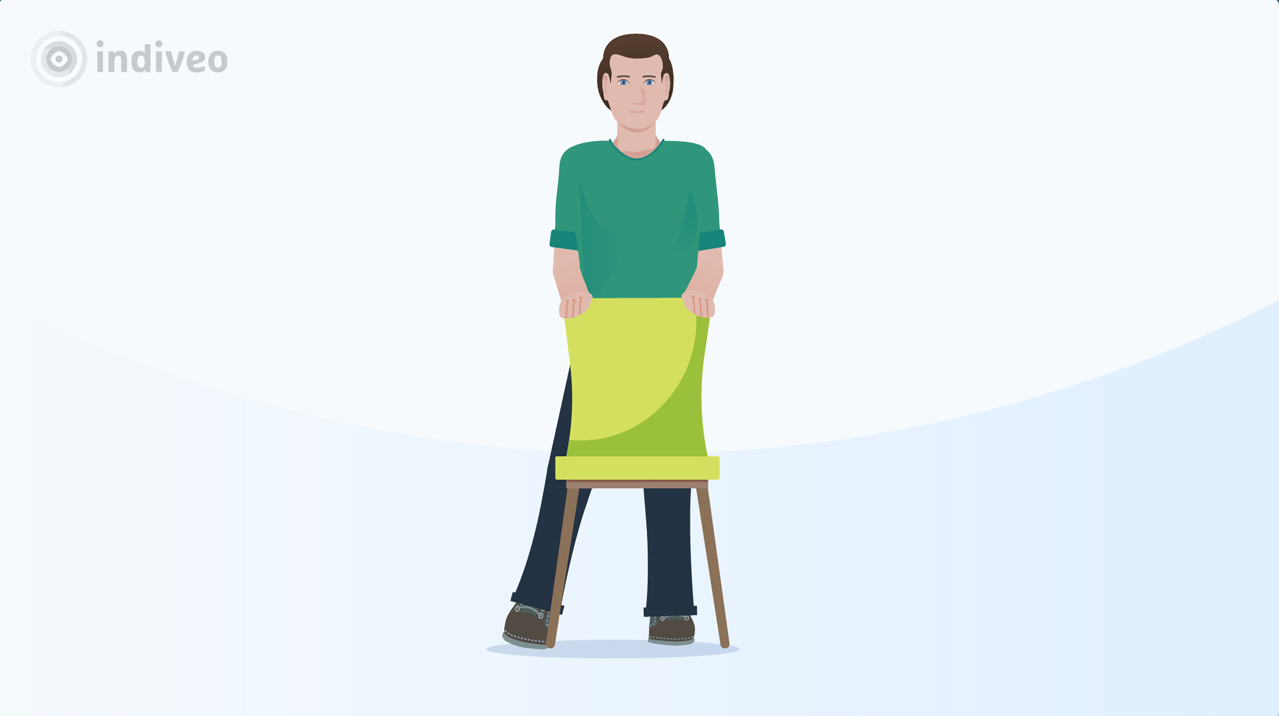 Ga bij een stoel staan en houd u vast. Beweeg uw geopereerde been naar de zijkant en tik de grond aan. Houd dit twee tot drie tellen vast en houd daarbij uw bovenlichaam rechtop. Beweeg uw been daarna weer terug.