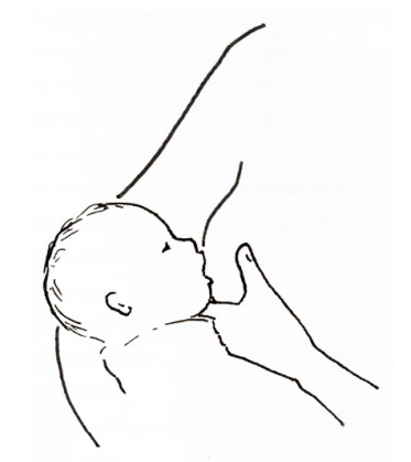 Houd zijn onderkaak zachtjes vast met uw duim en wijsvinger als hij moeite heeft om de borst vast te houden.
