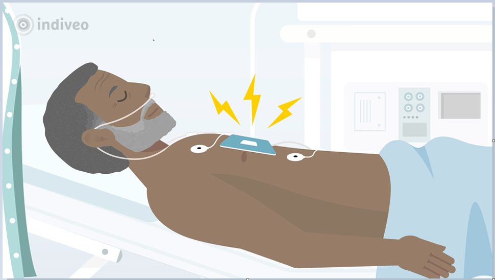 U krijgt 5 kleine plakkers op uw borst en buik. Bij een elektrische cardioversie krijgt u ook 2 grote plakkers op de borst. Deze plakkers zijn verbonden met de monitor of defibrilator.