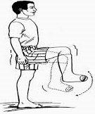 - Ga staan en til het been met gebogen knie op. Tel tot drie en leg weer neer.