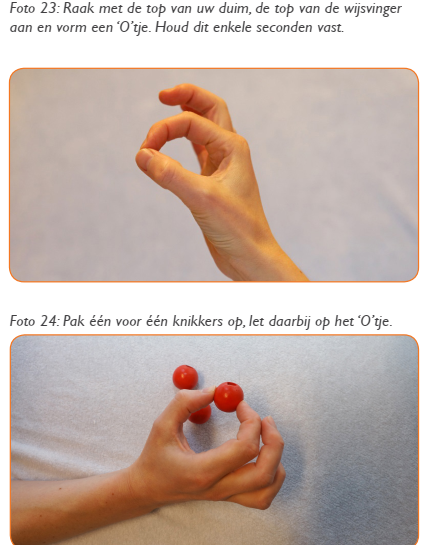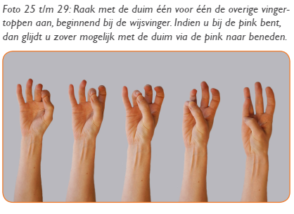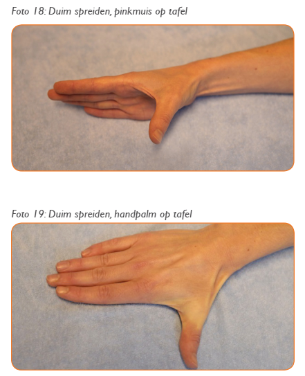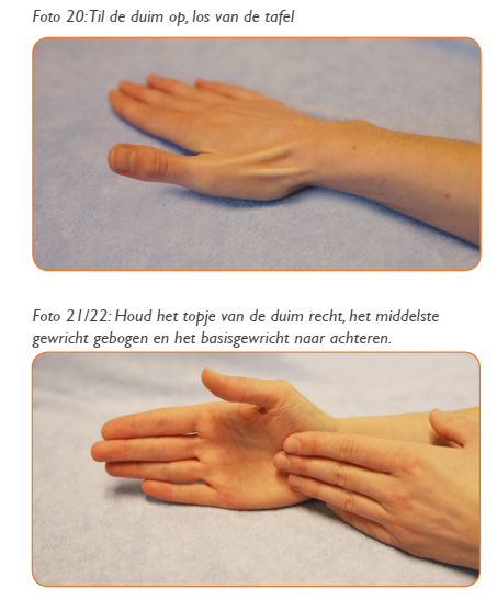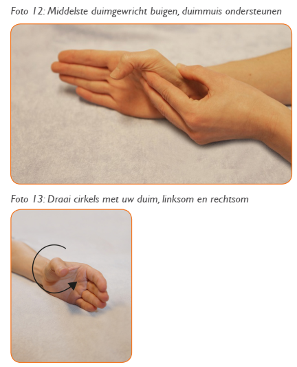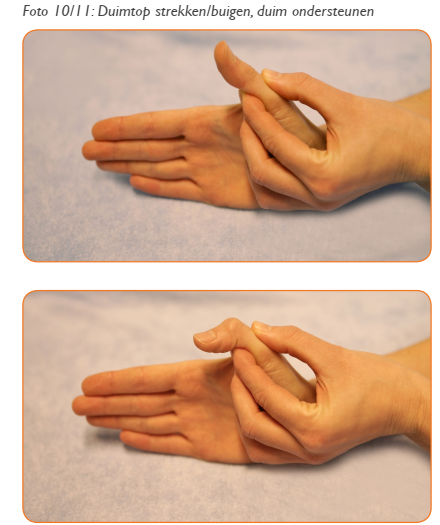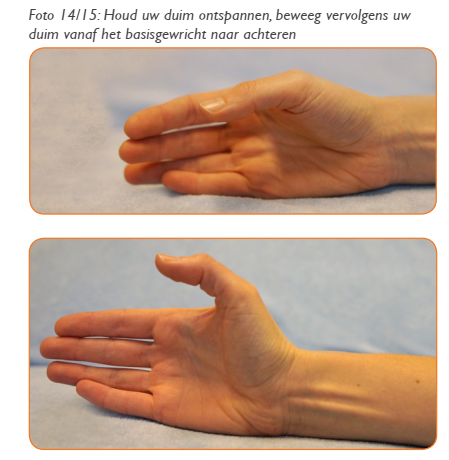Kijk in de folder voor het oefenprogramma voor de duim.