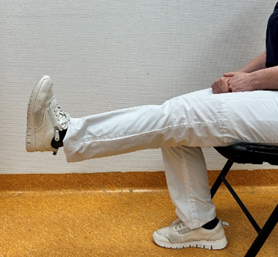 Ga op een stoel zitten. Probeer de gebogen knie helemaal recht te maken.