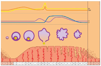 - uitrijpingsfase (luteale fase) van het baarmoederslijmvlies