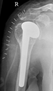 Hierbij wordt de schouderkop vervangen door een metalen kop met een steel die gedeeltelijk in het bovenarmbot wordt gebracht.