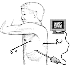 Dit is een kijkoperatie waarbij met een kijkbuis (thoracoscoop) in de borstholte wordt gekeken. De thoracoscoop bestaat uit een rechte buis, waarop een kleine videocamera is gemonteerd en een lichtbron. De thoracoscoop wordt verbonden met een TV-monitor, zodat de operateur zijn handelingen op een TV-scherm ziet en controleert. Deze thoracoscoop wordt tussen de ribben door in de borstholte gebracht, zodat de buitenzijde van de long kan worden bekeken. Zo nodig kan er een weefselmonster voor onderzoek worden genomen. Bij een thoracoscopische ingreep worden speciale chirurgische instrumenten gebruikt om in de borstholte te kunnen opereren zonder een grote snede (litteken) te maken.