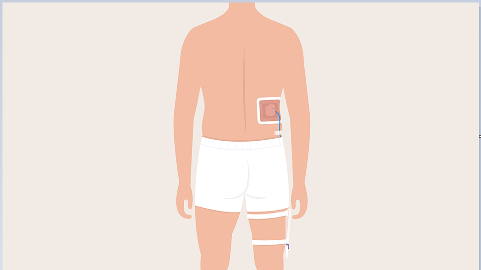 De nefrostomiepleister zit op de plek waar de katheter uit uw lichaam komt. De pleister wordt één keer per week vervangen. U doet dit niet zelf. Een thuiszorgmedewerker of iemand van uw familie doet dit. Zij hebben uitleg gekregen hoe het moet.
