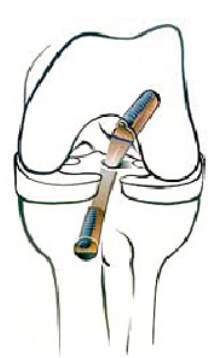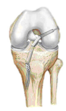 Het peesmateriaal wordt in de boortunnels in de knie gebracht op de plaats van de oorspronkelijke kruisband en verankerd door middel van een speciale schroef in het bovenbeen en een schroef in het onderbeen.