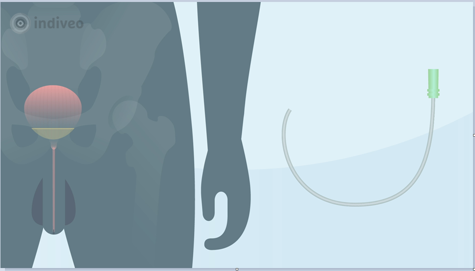 Urine gaat vanuit de blaas via de plasbuis uit het lichaam. Als u de blaas niet helemaal meer kunt leegmaken, leert u om zelf met een katheter uw blaas leeg te maken. Dat noemen we zelfkatheterisatie. Voordat u start met het katheteriseren is het belangrijk dat u uw handen wast. Zo kunt u infecties aan de plasbuis voorkomen. Daarna legt u alle spullen klaar en neemt u plaats op het toilet op de manier die u prettig vindt. U maakt het gebied rondom de plasbuis schoon. Eerst schuift u de voorhuid van de penis terug. Daarna kunt u het goed schoonmaken. Om de katheter in te brengen tilt u de penis omhoog richting uw buik. Met uw andere hand pakt u de katheter vast. Houdt uw vinger op de opening van de katheter, zodat de urine nog niet weg kan stromen. Daarna brengt u de katheter rustig in de plasbuis. De eerste paar keren kan het inbrengen pijn doen. Na een aantal keer wordt dit minder. Als de urine begint te stromen zit de katheter in de blaas. Om de katheter op de juiste plek te krijgen schuift u deze nog een klein stukje verder. Buig de katheter met de opening richting het toilet zodat de urine in het toilet kan stromen. Blijft de katheter vasthouden totdat uw blaas leeg is. Uw blaas is leeg als er geen urine meer uit de katheter komt. Daarna haalt u de katheter rustig uit de blaas. De katheter kunt u weggooien. Tot slot wast u daarna opnieuw uw handen. Het katheteriseren is klaar.